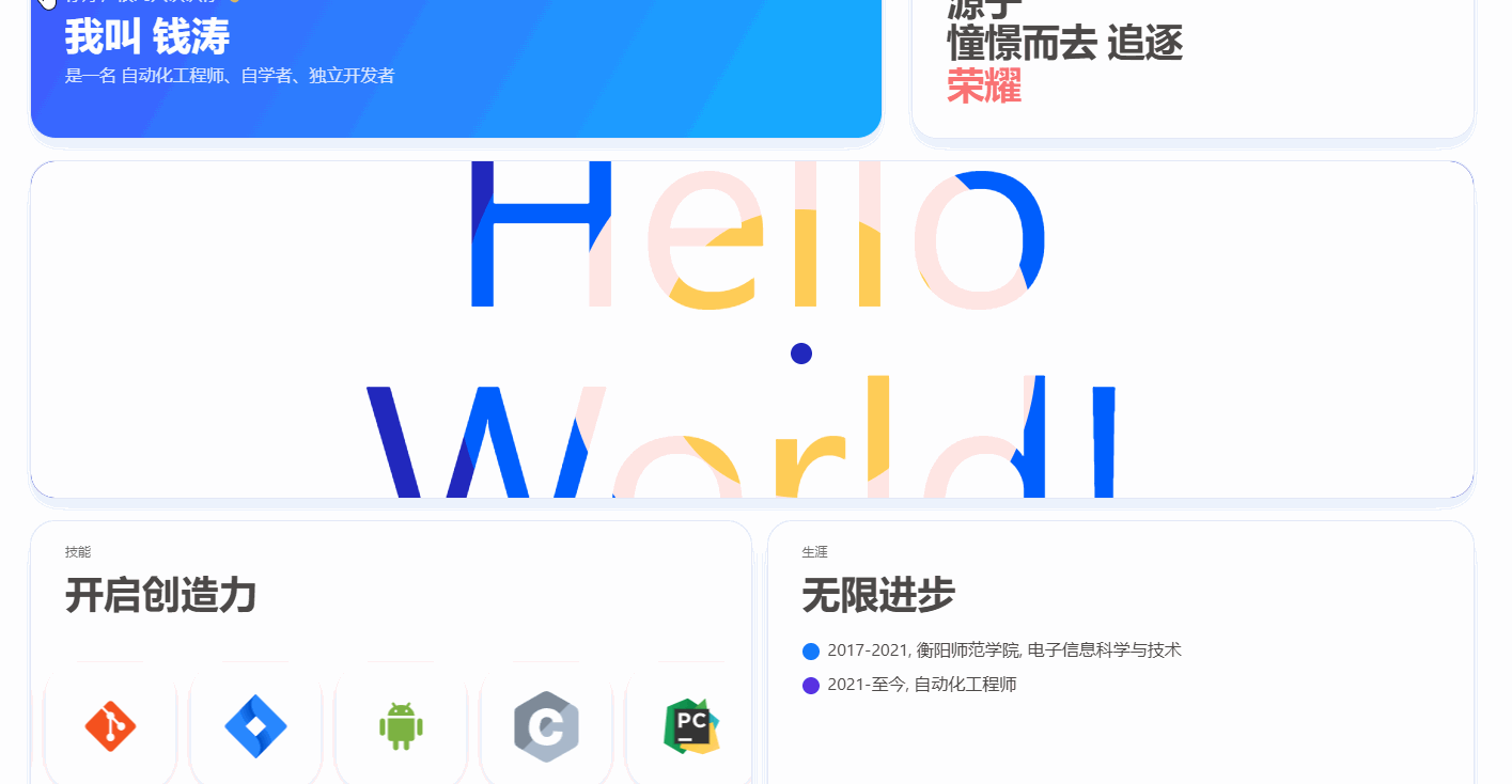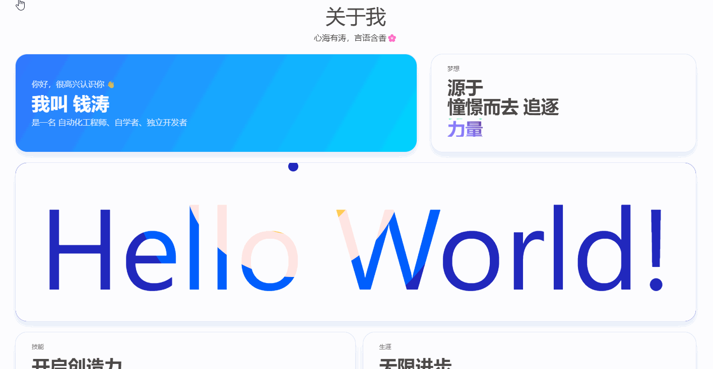在配置安知鱼主题的关于页面时,发现helloAbout的动效突然不起作用了。如下图所示