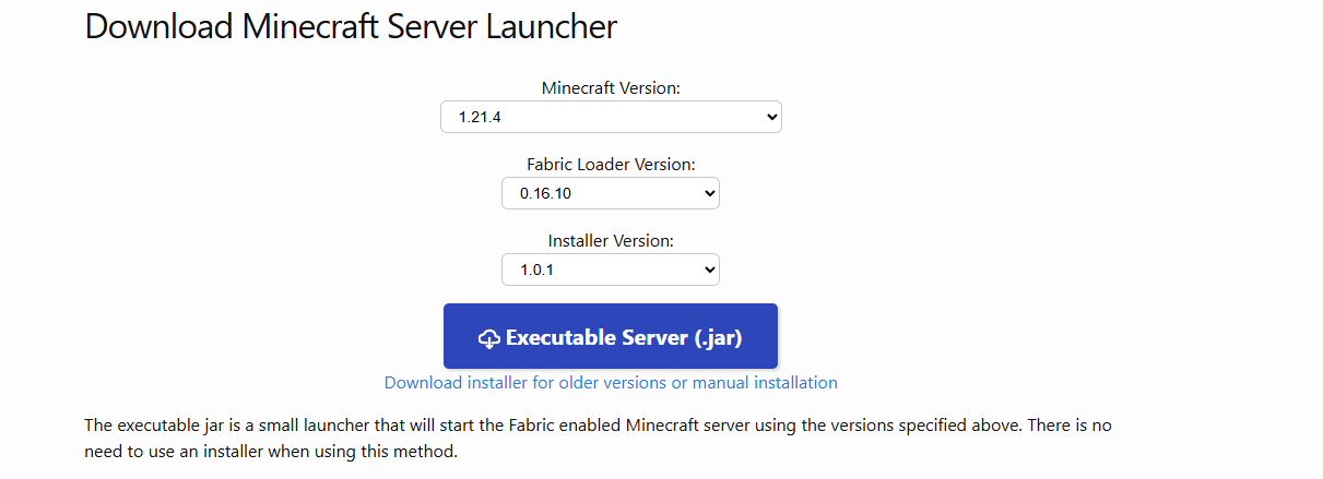 访问fabric官网,下载服务器核心,并上传到服务器上